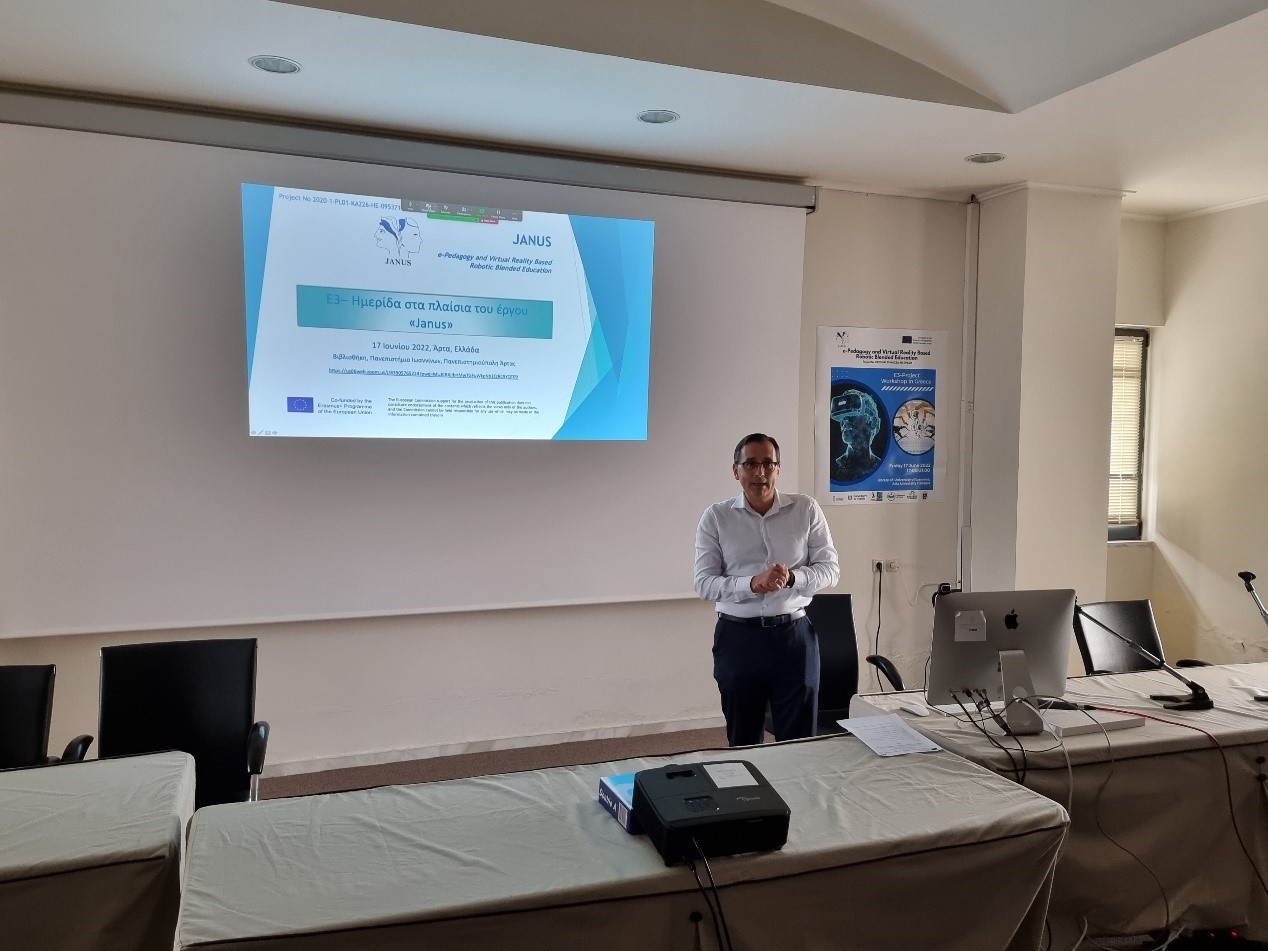 The Laboratory of Knowledge and Intelligent Computing of the Department of Informatics & Telecommunications of the University of Ioannina organized on Friday, June 17, 2022 at the Library of the University Campus in Arta, an Information Day-Multiplier Event on the results of the European Project JANUS - e-Pedagogy Based, Robotic Education, which is implemented under the Erasmus+ Program. The event was also broadcast live giving the opportunity to those interested to participate without physical presence.